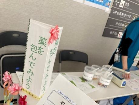 会場では、医療講座をはじめ、お菓子を薬に見立てた調剤体験、血糖値・血圧測定、血管年齢測定など多数のイベントを実施しました。